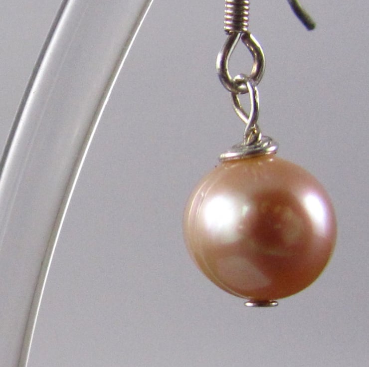These beautiful peach pearl silver earrings have a classic quality to them. They are created from real pearls and 925 silver. Perfect for everyday wear, brides or that special occasion.