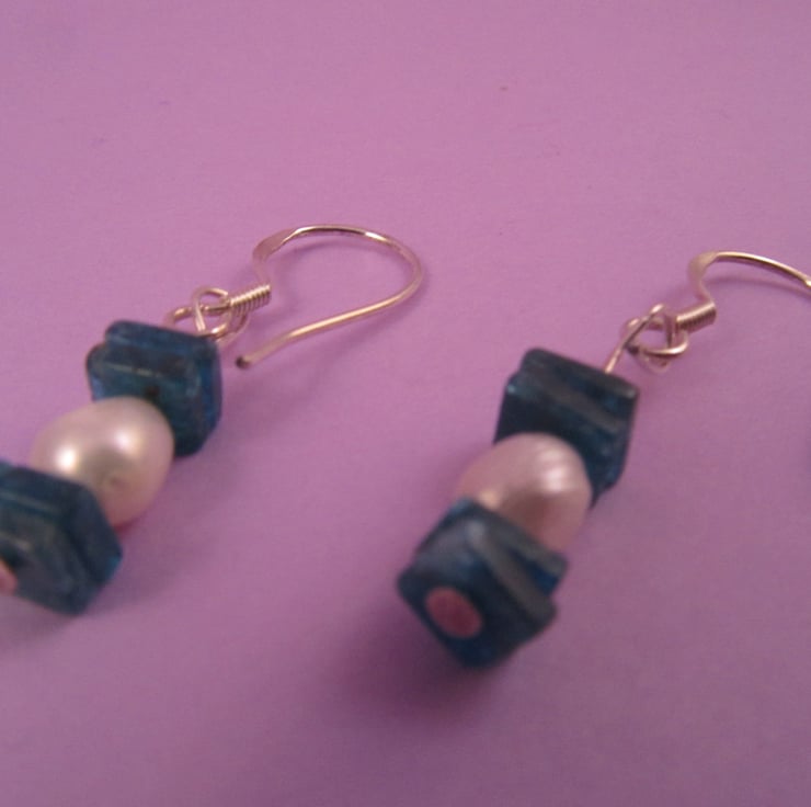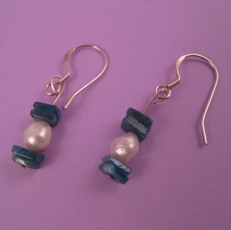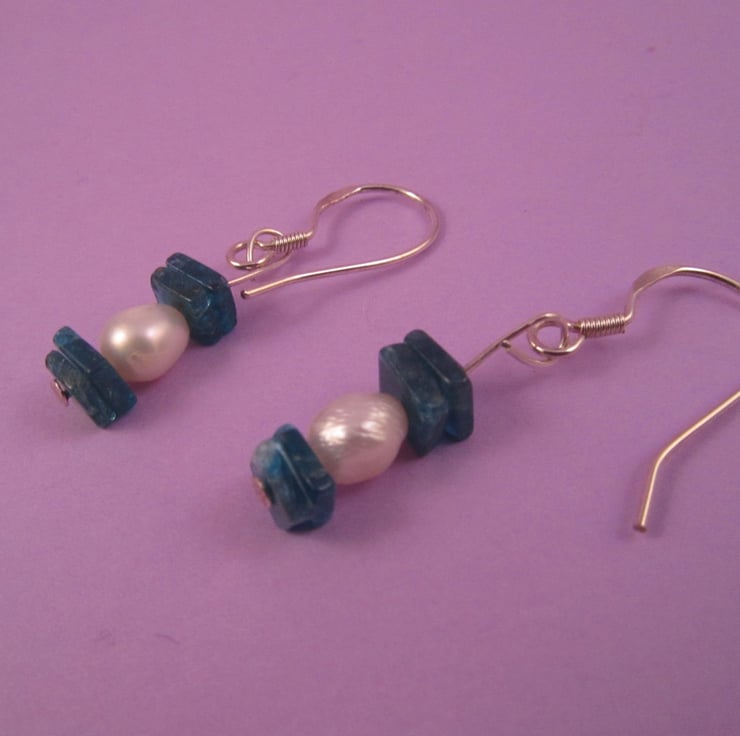 These beautiful blue Neon Apatite and whtie pearl sterling silver earrings will add a touch of luxury to any outfit. The earrings are made from real Neon Apatite gemstones and real pearls. The photographs do not do justice to the colour of the Neon Apatite, its shades of blue and green are amazing.