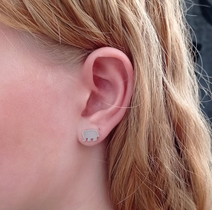 I have made these elephant stud earrings by cutting recycled sterling silver by hand and soldering sterling silver ear posts to the back. They are part of a collection of animal jewellery, which includes a matching elephant necklace (amongst other safari and domestic animals).
