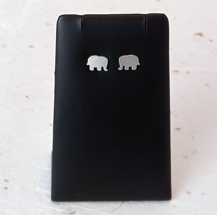 I have made these elephant stud earrings by cutting recycled sterling silver by hand and soldering sterling silver ear posts to the back. They are part of a collection of animal jewellery, which includes a matching elephant necklace (amongst other safari and domestic animals).
