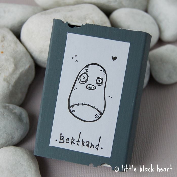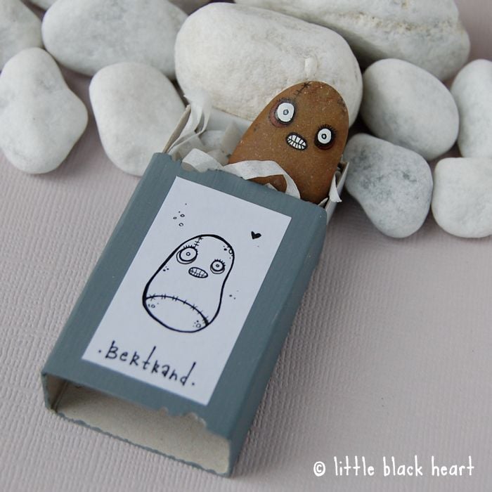 this original little artwork is handpainted by myself. it is not varnished or sealed as i did not want to change the original colour and feel of the pebble, so please take care not to handle too much or his features might rub off!