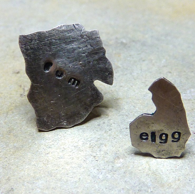 Message me on Folksy with details of your place. You'll received a bespoke consultation including an outline drawing of your place and size. You'll be able to pick the texture: roughened and oxidised (as shown here) or polished. Your studs can also be stamped with a short word (your name/the island's name?) or you can choose to place a mark in a particular location (see Isle of Tiree studs).
