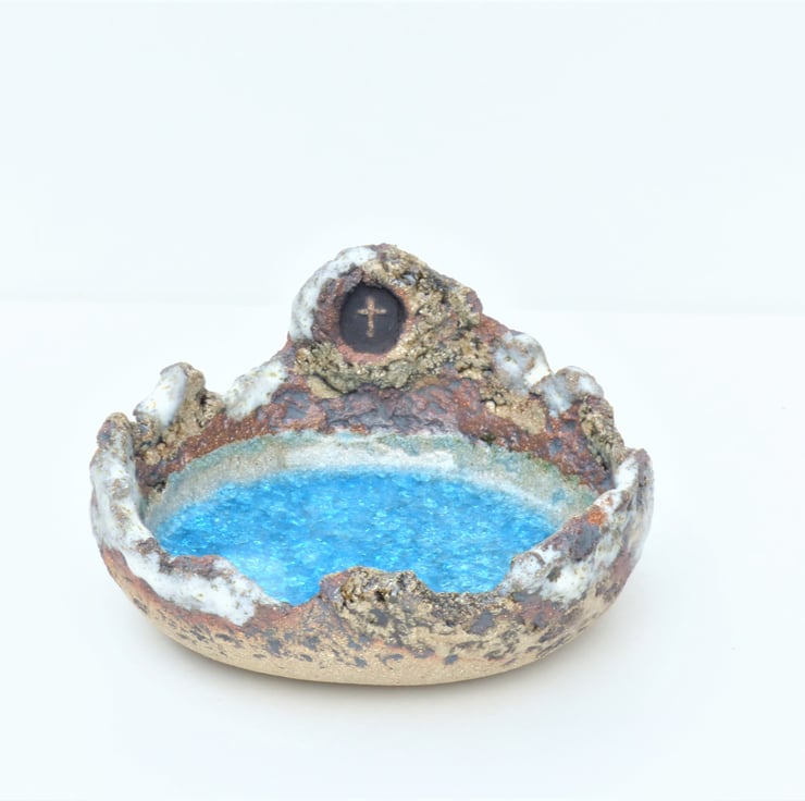 This sculptured bowl is wonderful to help with contemplation and prayer and would also make a wonderful gift for Baptism, Christening, First Communion, Confirmation, or a really beautiful Wedding Ring Dish or a gift for an Ordination.
