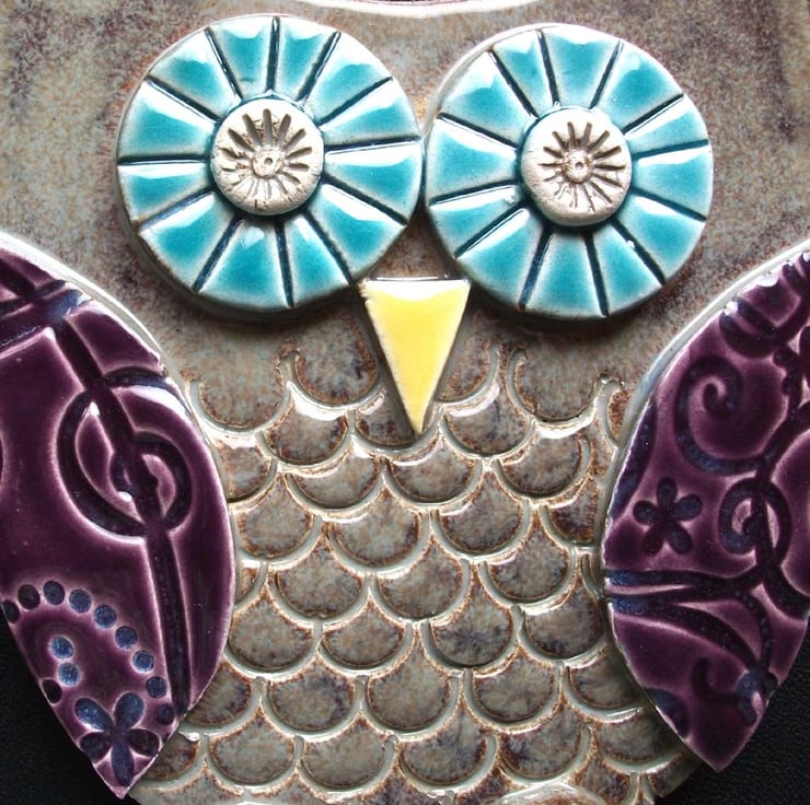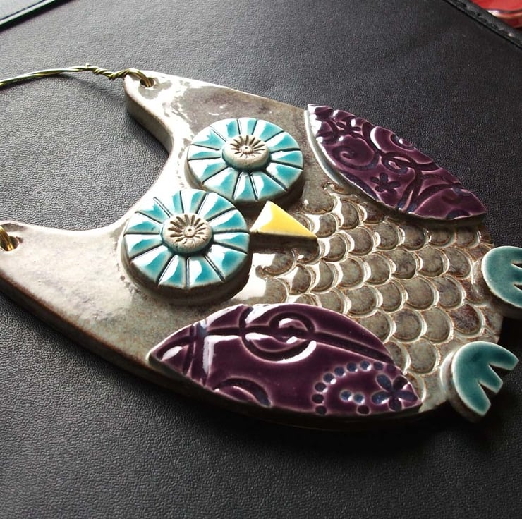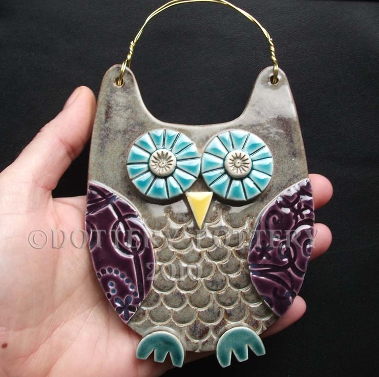 This cute ceramic owl is made from white earthenware clay with all the individual pieces hand cut and decorated.