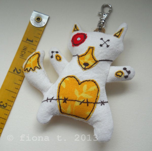 these deadly cute miniature fabric zombie foxes measure about 8cm (3 inches) tall from the tips of their ears to the tips of their shuffling toes.