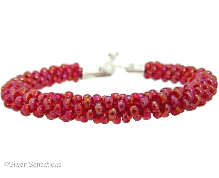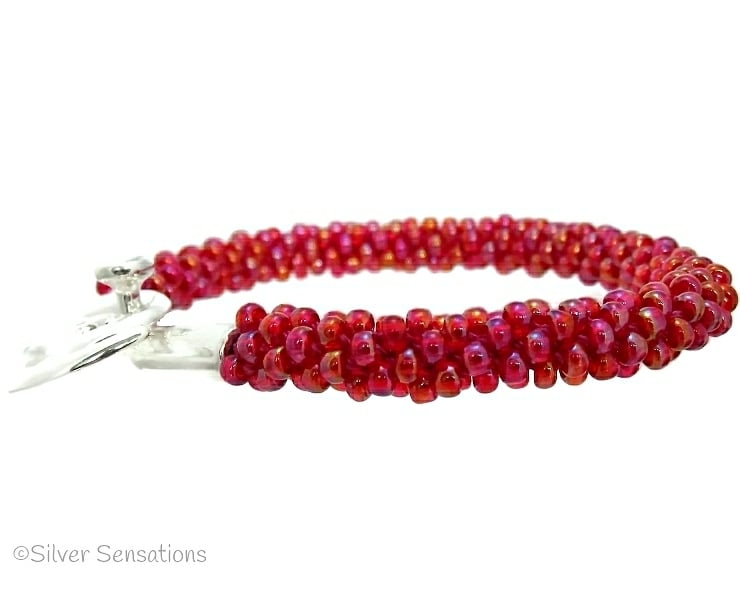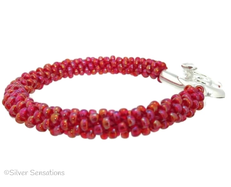 These beautiful beads are a raspberry red colour which also have a rainbow effect which makes them really glow & shine.