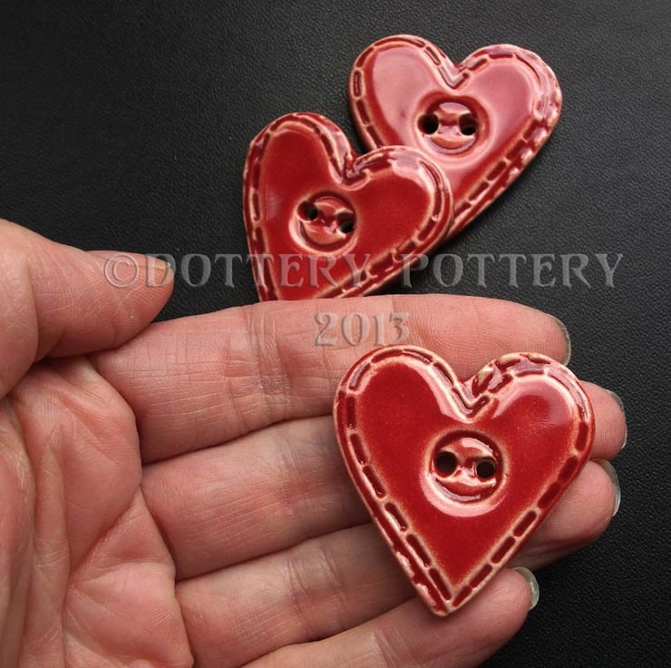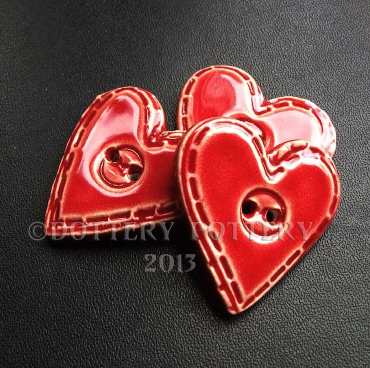 This set of buttons are made from white earthenware clay and finished with a rich, glossy red glaze on the front.