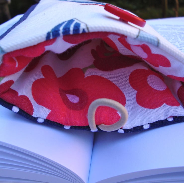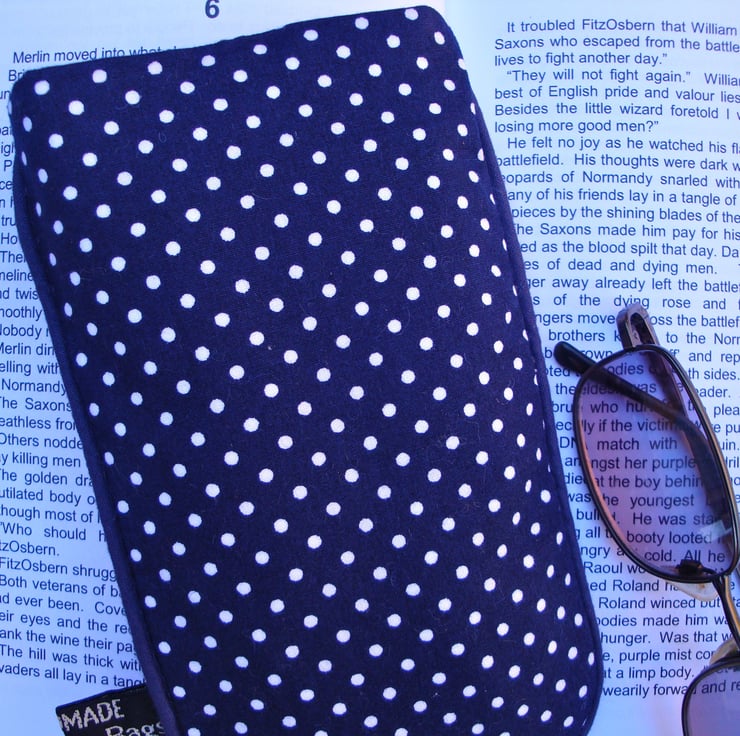 Back of case has been made in a navy-blue polkadot cotton fabric.
