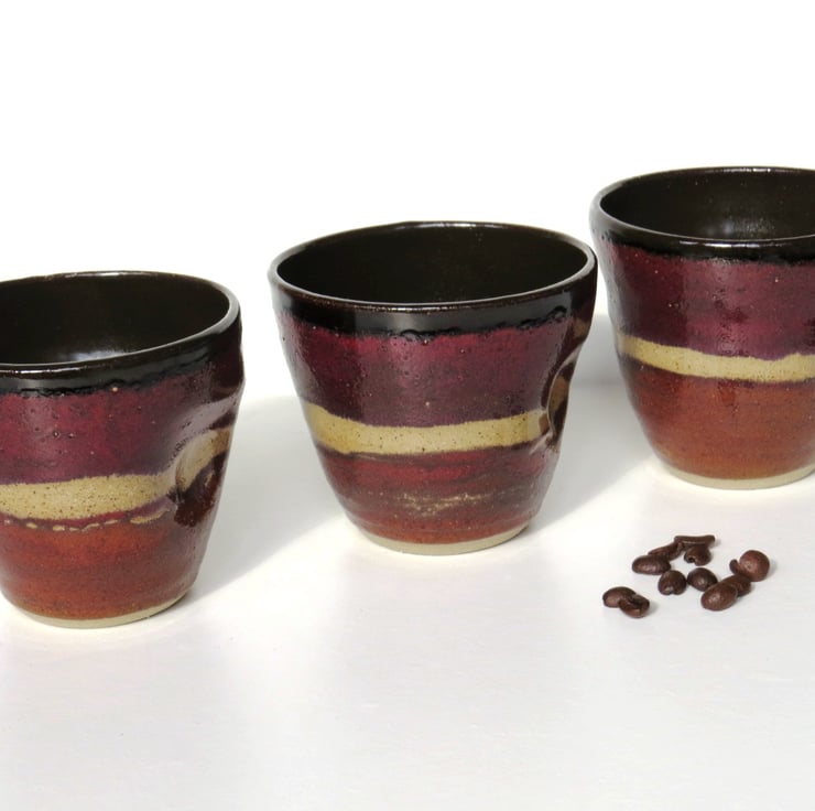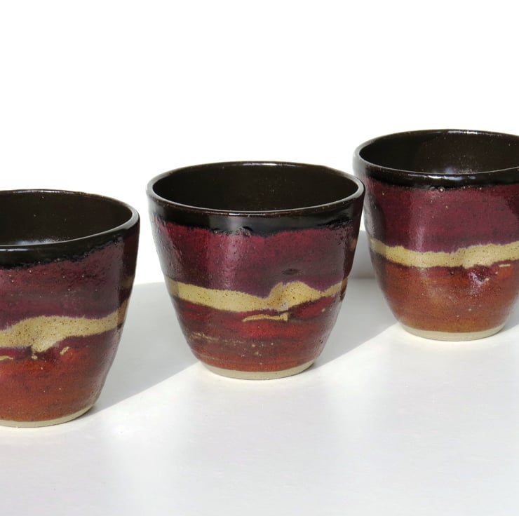These three MINI TUMBLERS were thrown on the potter's wheel.