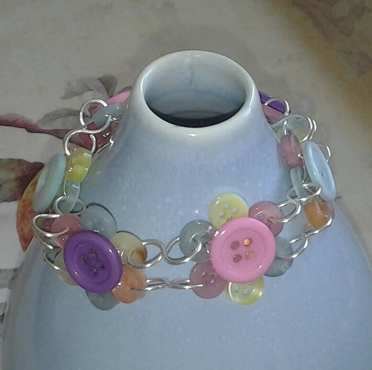 I have made this pretty bracelet using a selection of small buttons which I have wired together to create lovely button flowers.