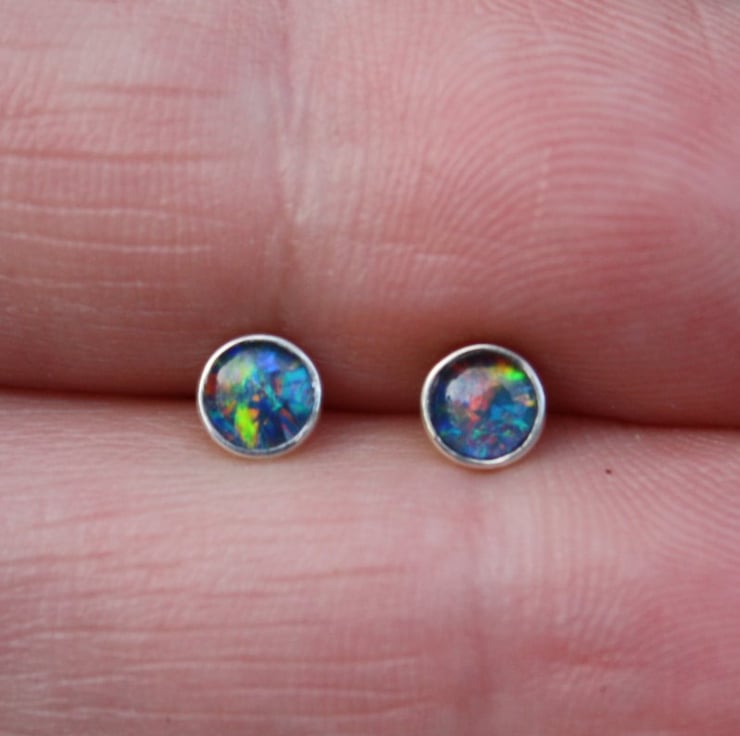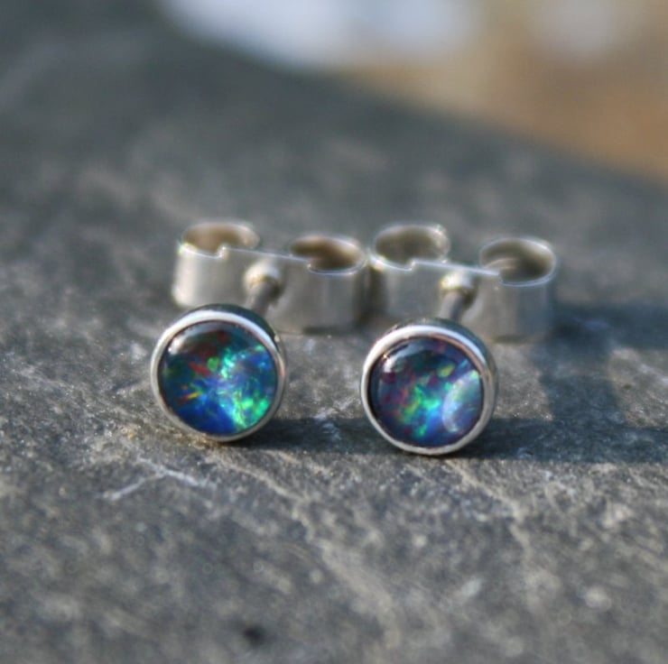 Simple sterling silver stud earrings set with stunning opal triplet cabochons.