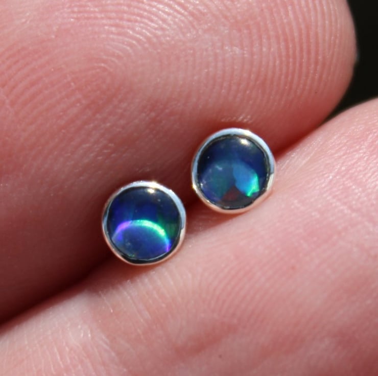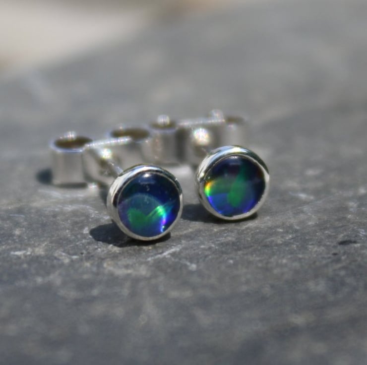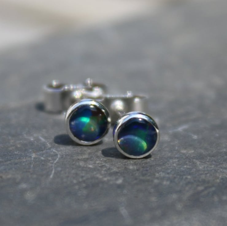 Simple sterling silver stud earrings set with stunning opal triplet cabochons.