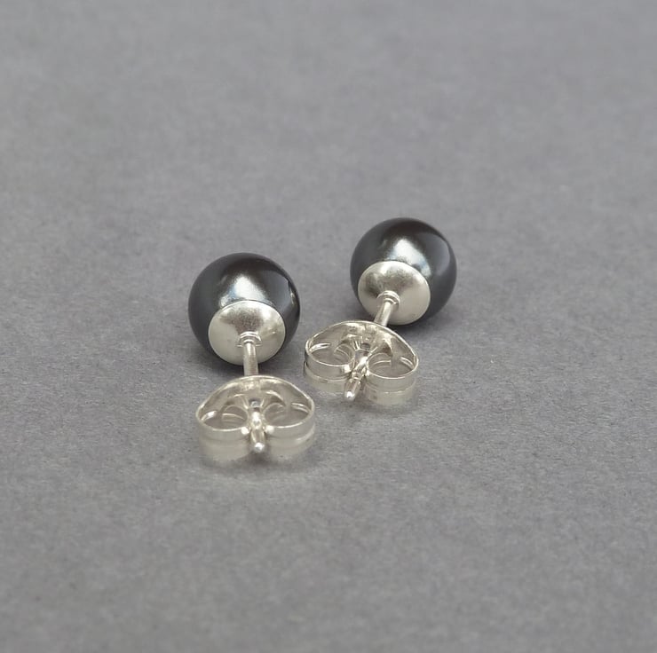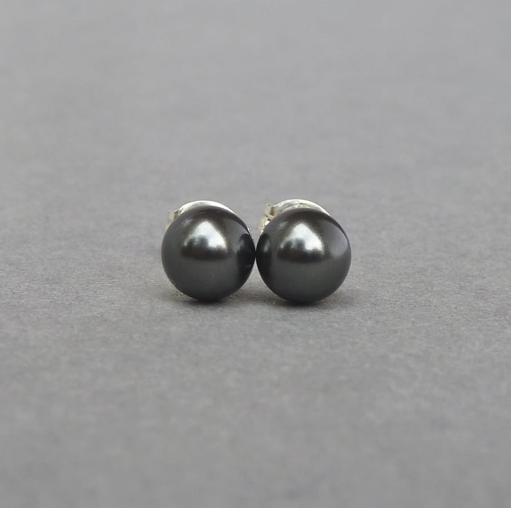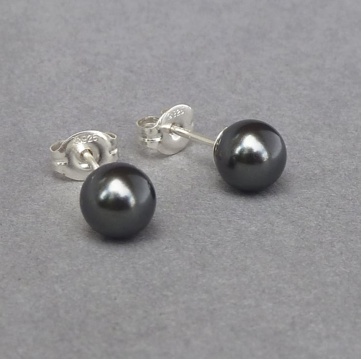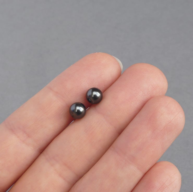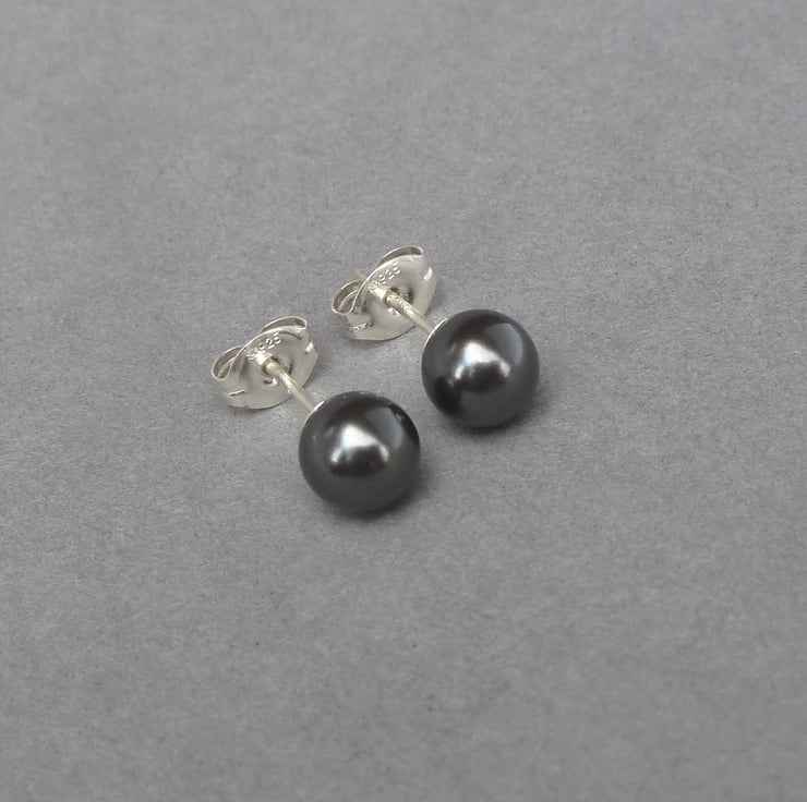 This simple pair of dark grey stud earrings has been created using 6mm black Swarovski pearls. As each pair comes individually gift wrapped, these pearl studs make the perfect gift and are ideal for wearing everyday.