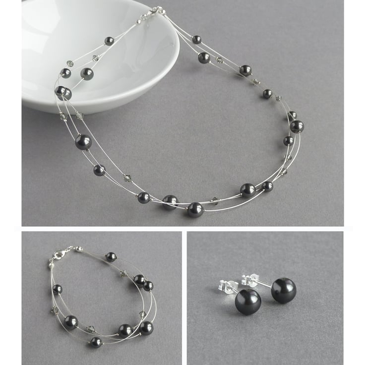 Black pearl multi-strand jewellery set: https://folksy.com/items/7186555