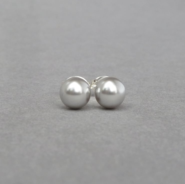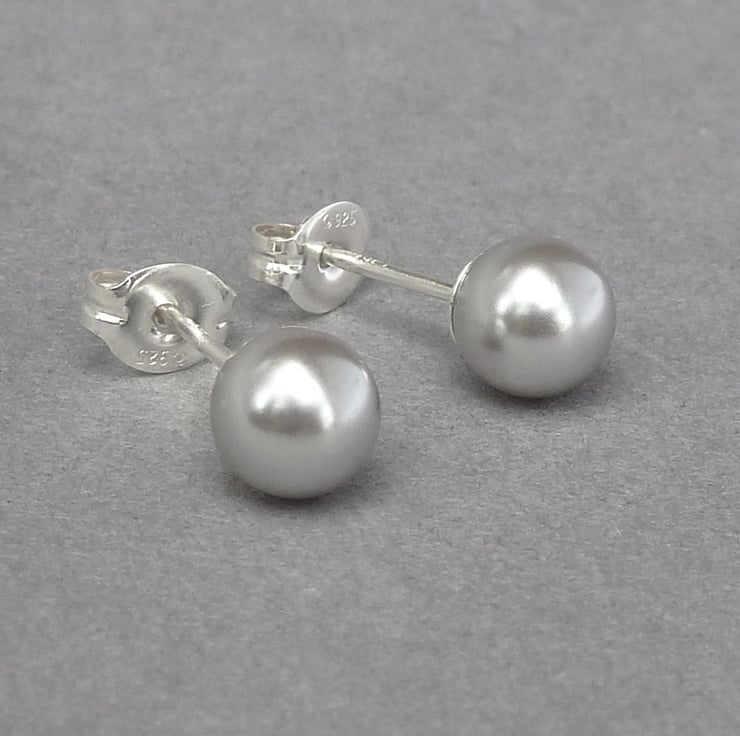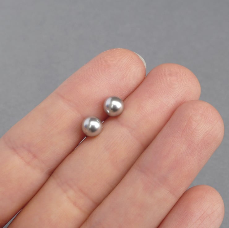This small pair of pale silver stud earrings has been created using 6mm light grey glass pearls. As each pair comes individually gift wrapped, these pearl studs make the perfect gift for bridesmaids in a grey themed wedding. Pearl studs are also great for wearing everyday, to complete an outfit.
