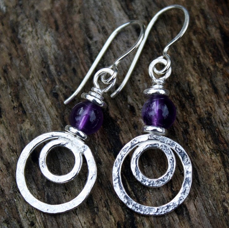 The silver beads echo the eye shapes on a male peacocks tail, they have a hammered texture that catch the light.