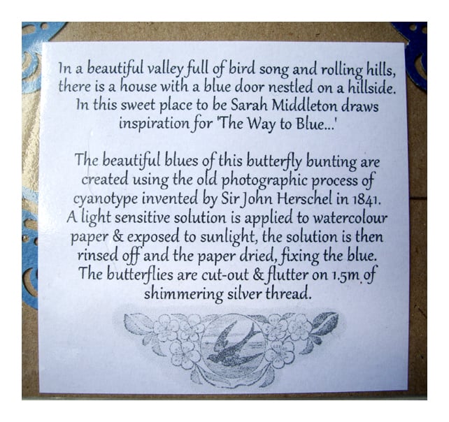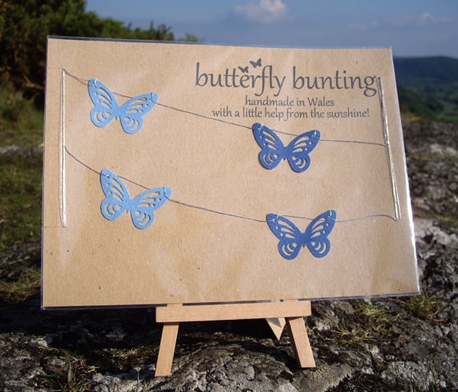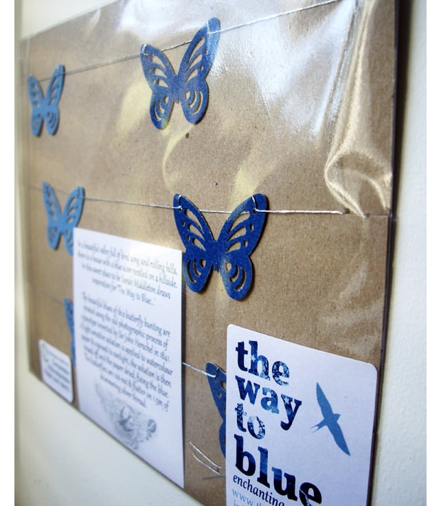 Handmade in North Wales each butterfly is cut-out from Bockingford watercolour paper. The various blues are created by applying a light sensitive solution & exposing the paper for various amounts of time to the sunshine, the solution is then rinsed off and the paper dried, Presented on a recycled card backing with The Way to Blue's logo in an eco-friendly clear wrap (made from corn starch these are fully biodegradable and compostable).