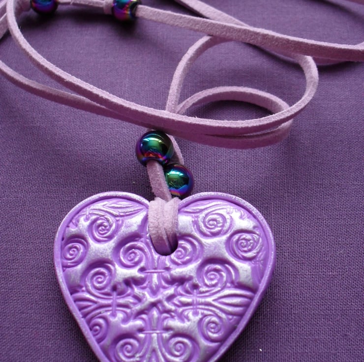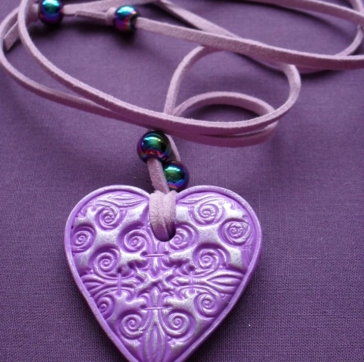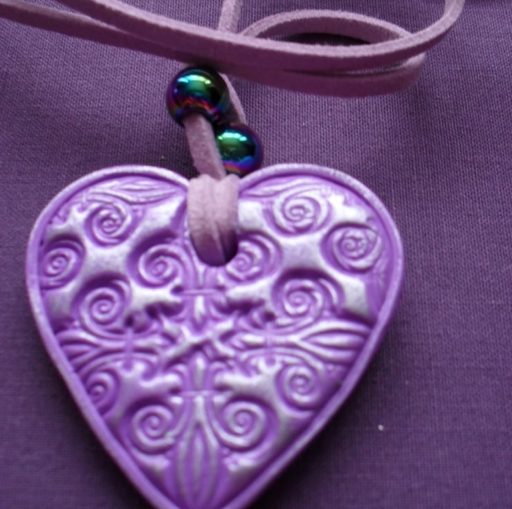 Sale was £5 now £3 Handmade polymer clay pendant in lilac clay with a detailed design