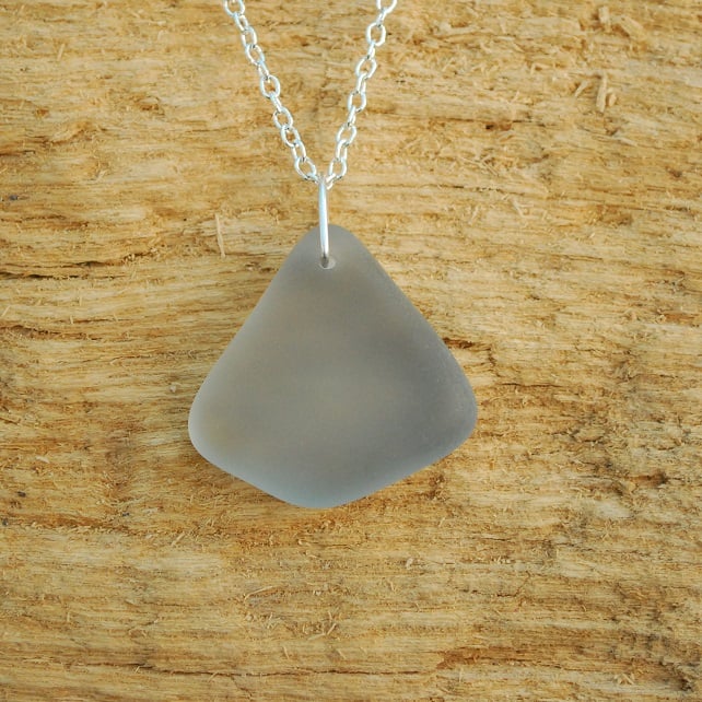 We have made this pendant from a stunning piece of grey beach glass. The beauty of the pendant lies in its simplicity and the way the glass picks up the light. We have tumbled the glass so it is rounded and silky smooth. It is very thick and lovely to feel. We very rarely find grey beach glass and this is an outstanding piece.
