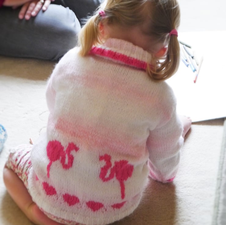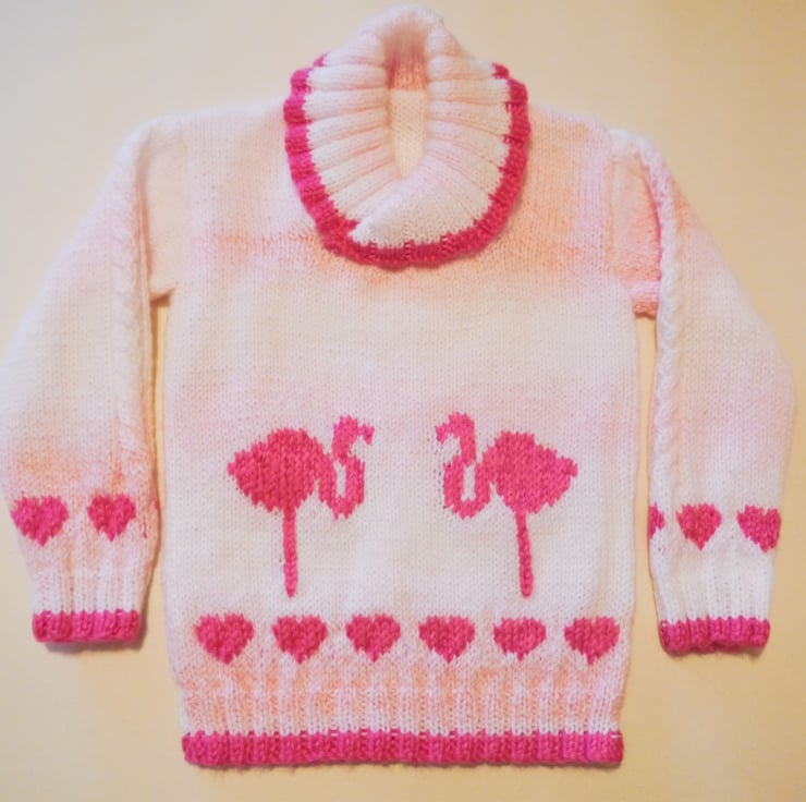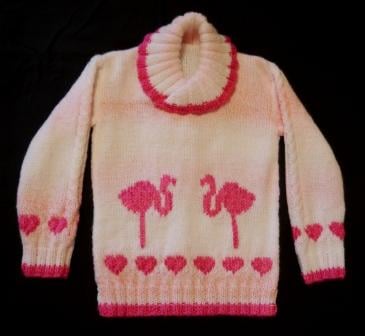 After the success of the "I Love Flamingos" pattern for babies, I decided to design a sweater for older children.