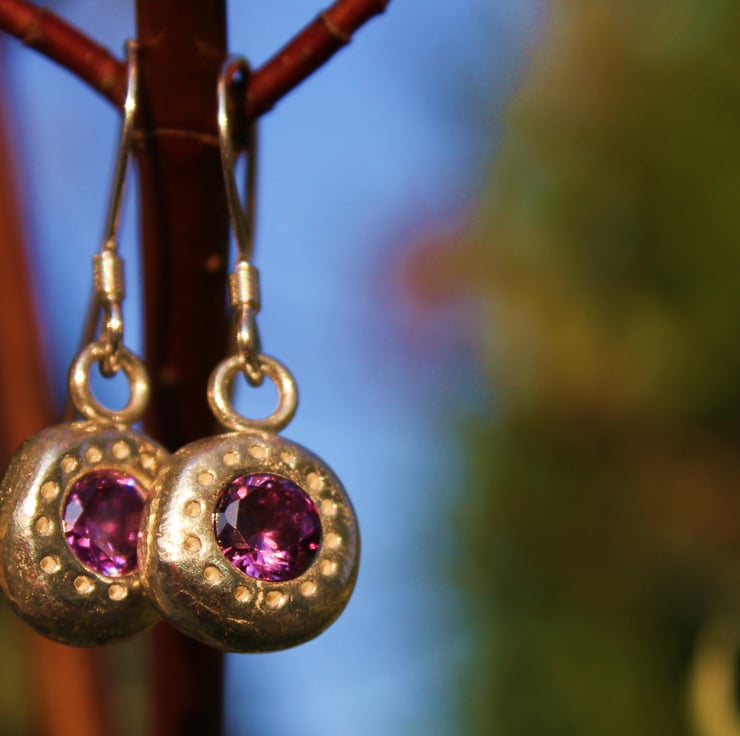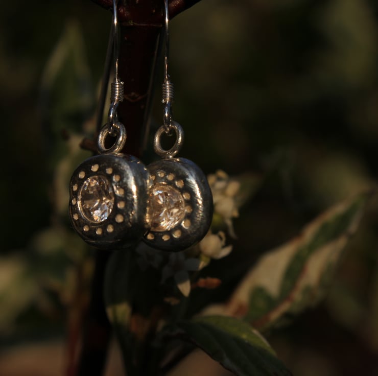 Beautiful solid silver and gemstone earrings measuring 10mm across. Each pair can be set with a pair of gemstones of your choice and are set on sterling silver hooks.