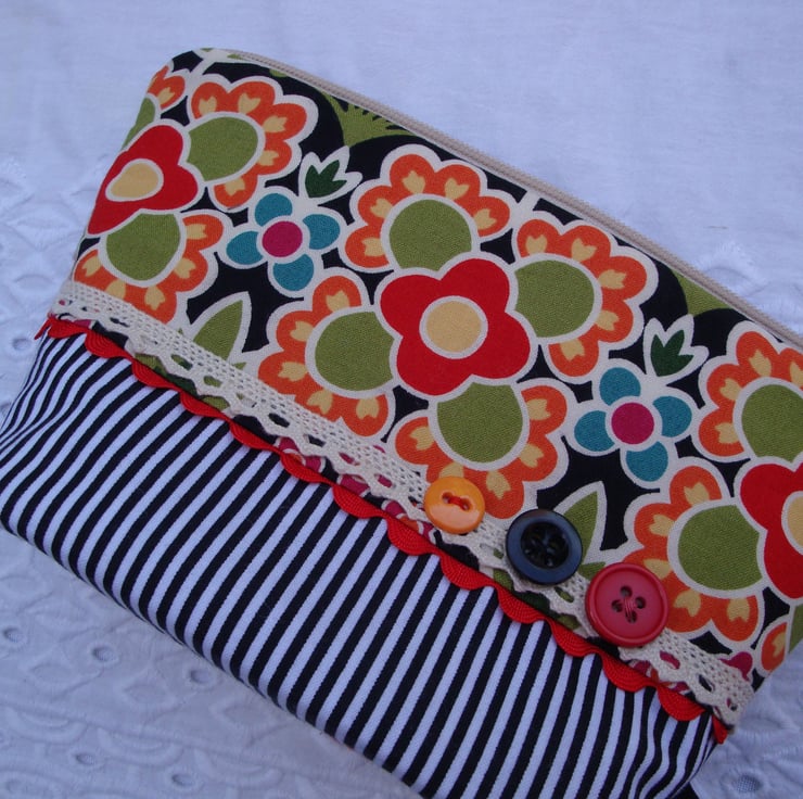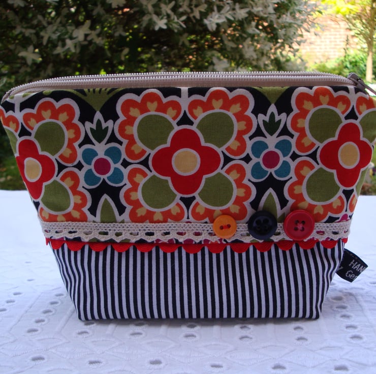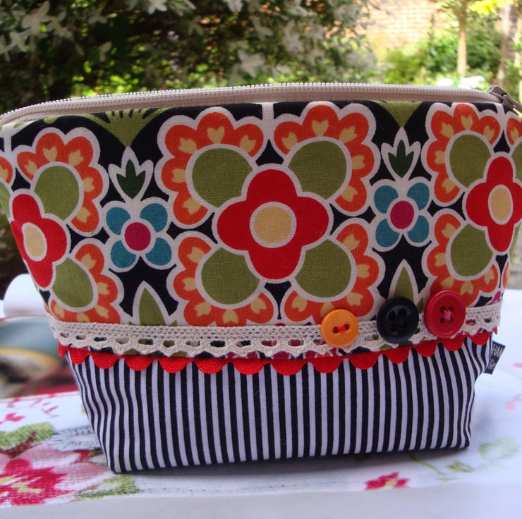 A beautiful cotton Make up bag , which I made to my own design . Bag is big enough to store your daily beauty essentials.