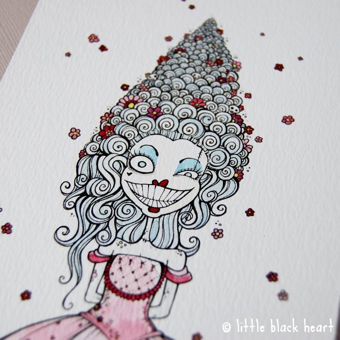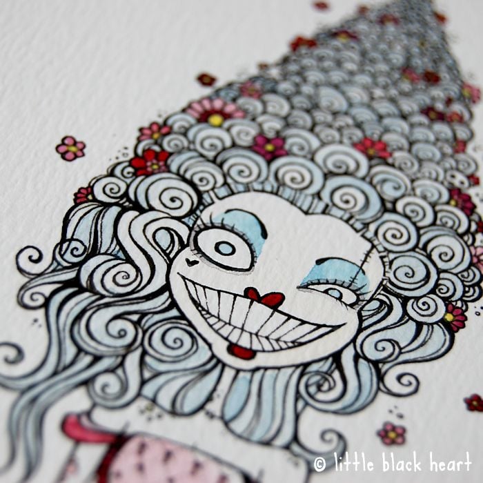 this illustration is an original artwork in artists pens and watercolour paint, on lovely textured white cardstock (300gsm). drawn in fine detail with a tiny 0.05 nibbed pen, and carefully coloured with just the very tip of a tiny paintbrush!