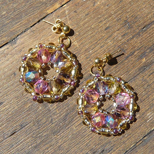 The earrings are about 2.5 cm (1 inch) in diameter and have gold plated ear posts.