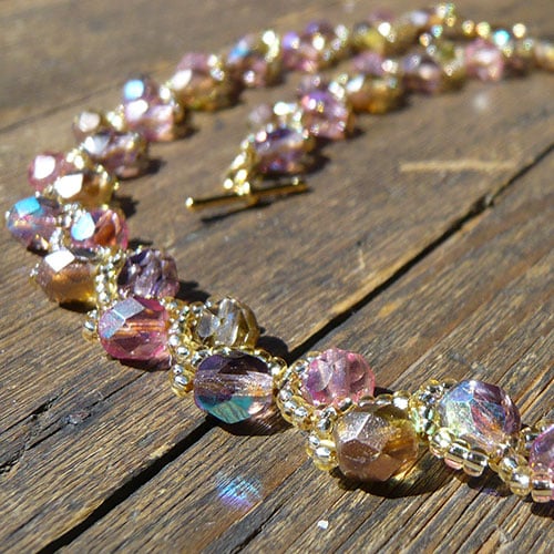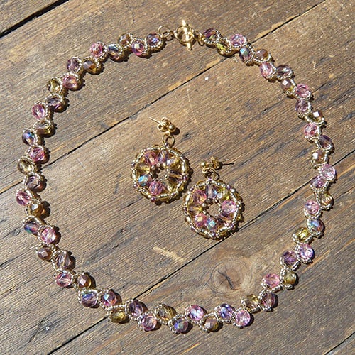These earrings and necklace are made of Czech glass beads and seed beads.
