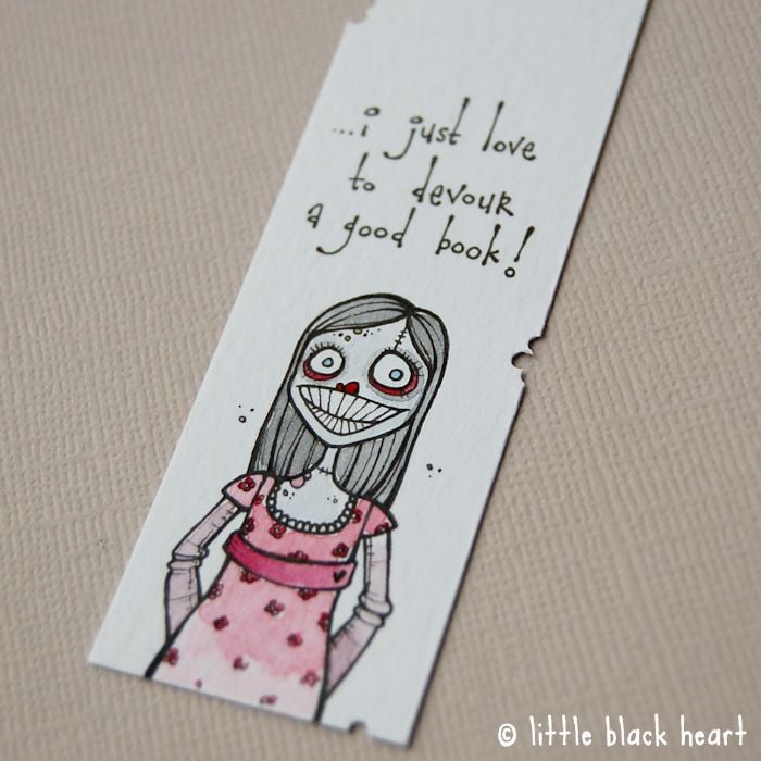 please note that as each zombie bookmark is drawn and handmade individually, the one you receive may differ slightly from those pictured above.
