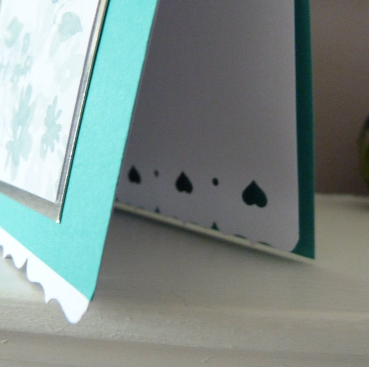 White pearl paper insert which has a pretty heart scalloped edging to provide interest.