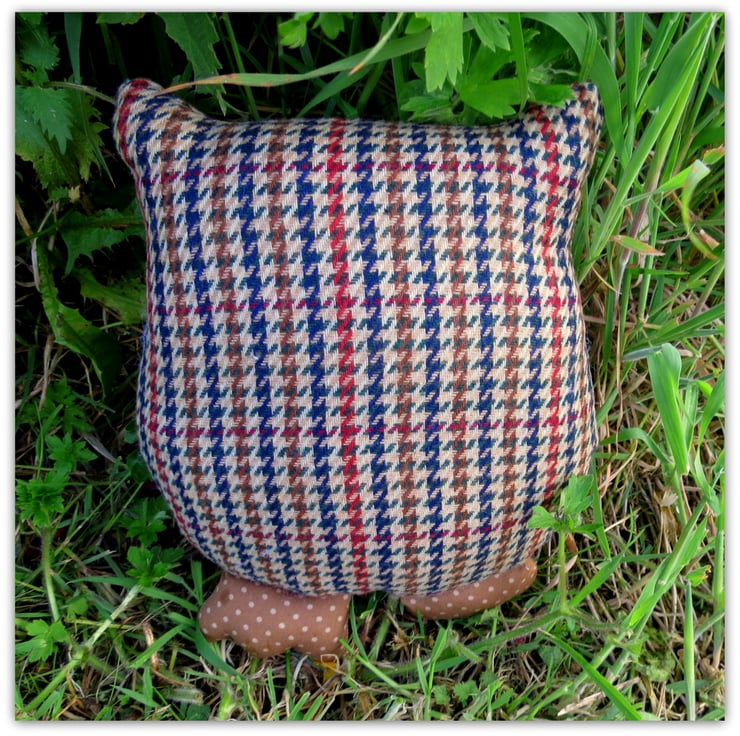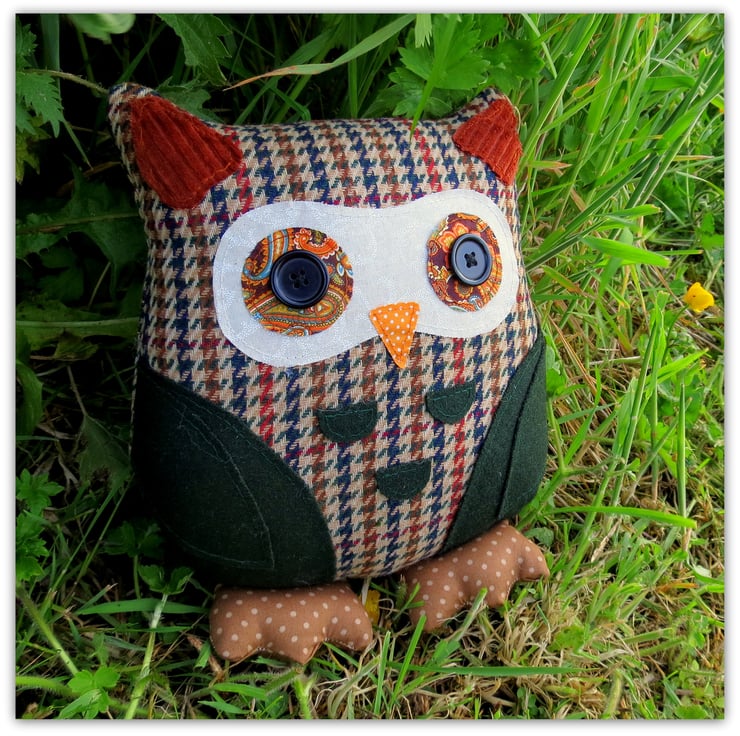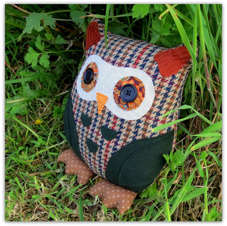 The plump roundness of the owl is the perfect shape for a cushion, and tweed is very tactile.