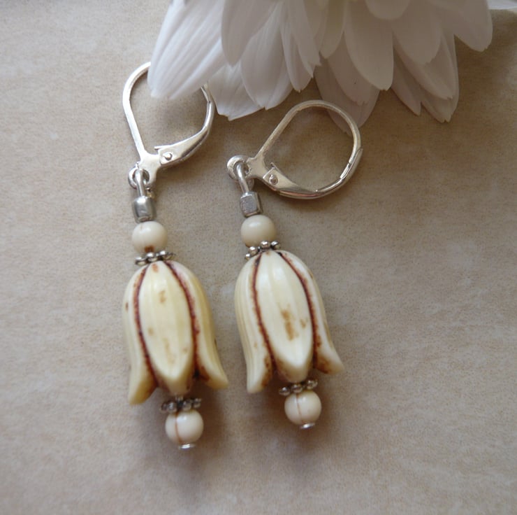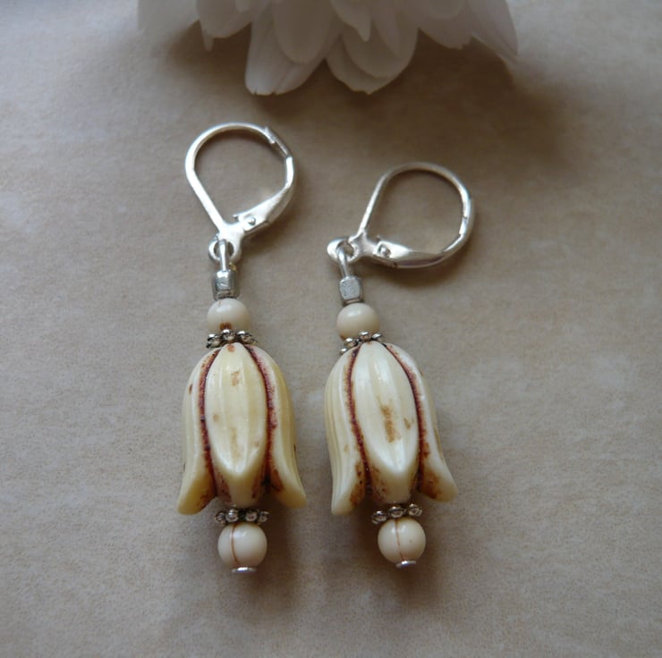 These acrylic tulip shaped beads hang approx 25 mm in length and they come with a silver plated ear clasp