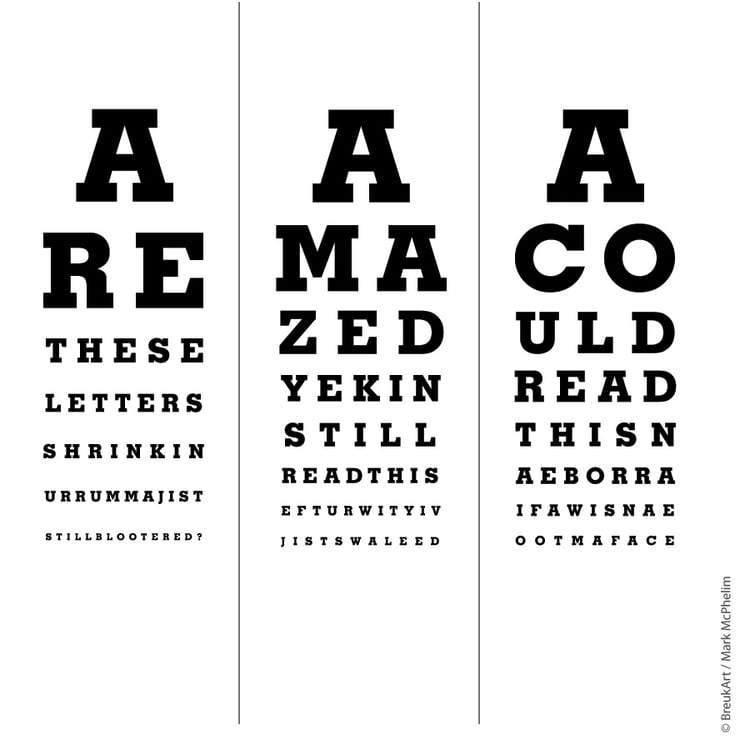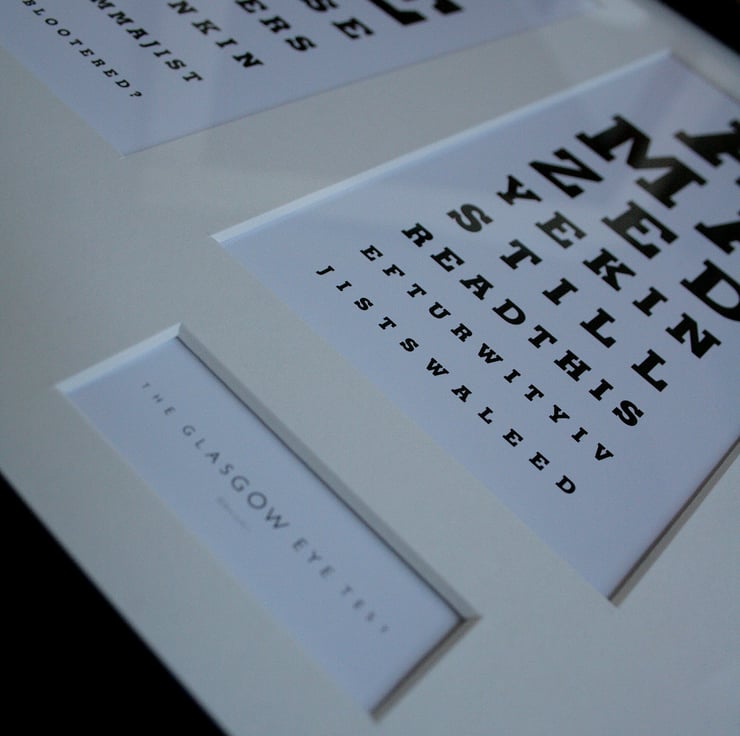 Based on the familiar 'Snellen Chart', there are three tests that will challenge your eyesight.....and your grasp of the Glaswegian tongue!