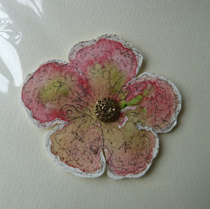 A lovely water colour pink/green flower design with gold button and a touch of glitter for glam !!