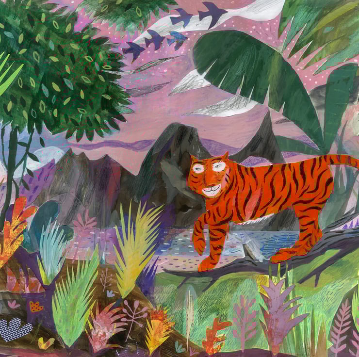 Here is a 14 x 11.7 inch print of a Tiger in the jungle - inspired by the poem 'Tyger Tyger' from William Blake's songs of innocence