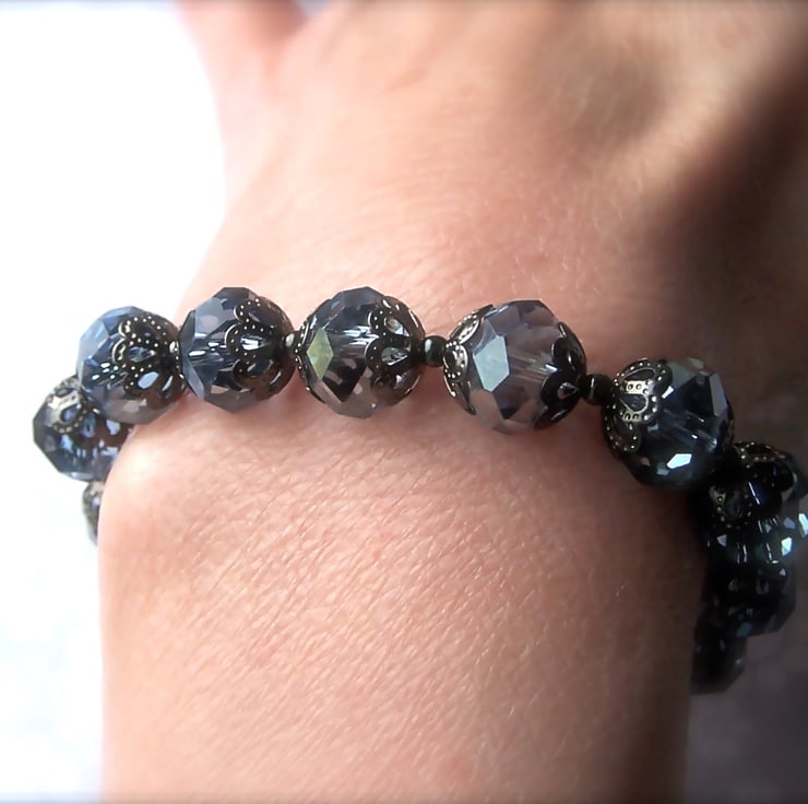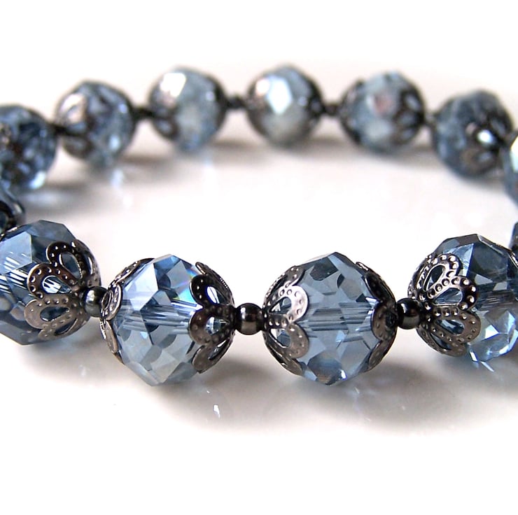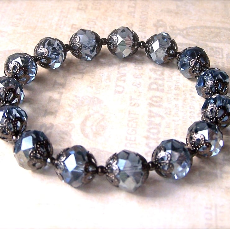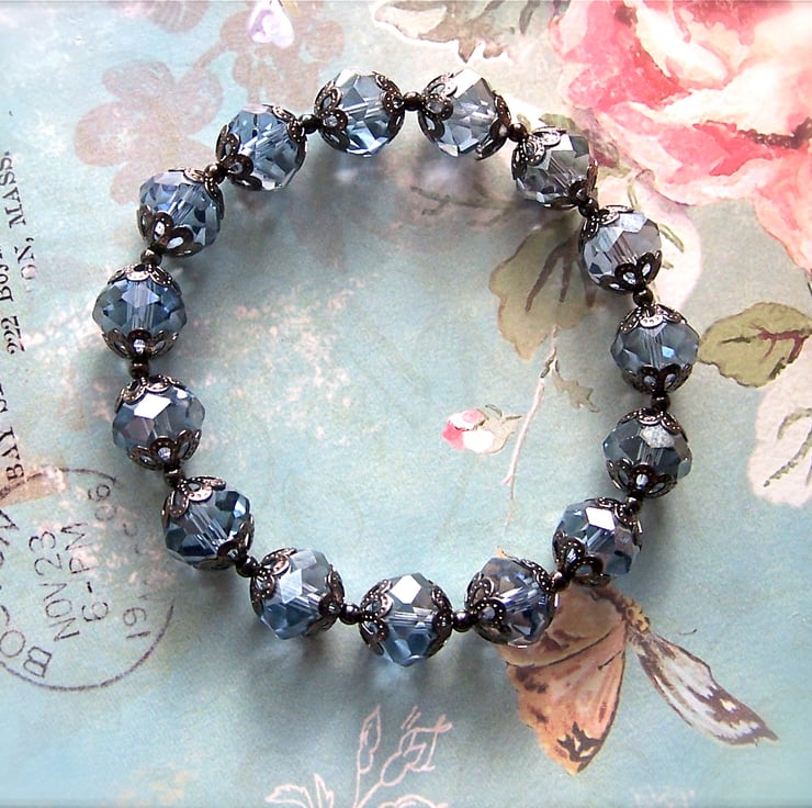 Montana Blue Bracelet, Crystal Beads, Vintage Style, Bridesmaid Gift