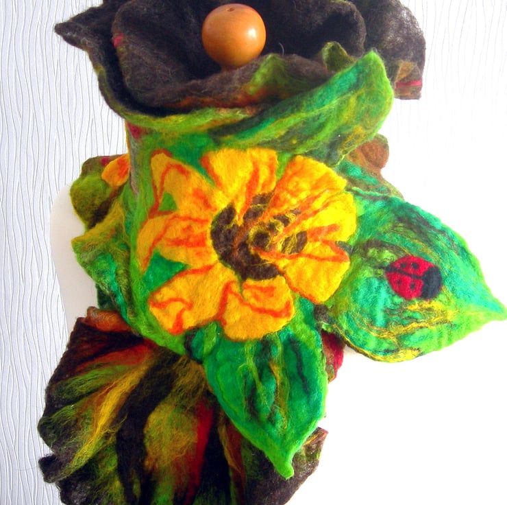 SALE...Wool Jewelry felted scarf-100% WOOL MERINO