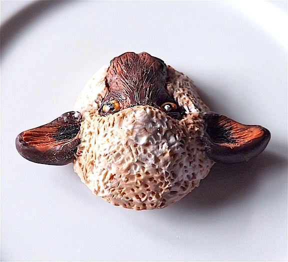 Inspired by my explorations of polymer and metal clays I have sculptured this brooch in polymer clay, fired and hand polished. this is my version of a rare breed Dorset Down ram, called Harry and owned by Jill Swain. Thank you for viewing I will be adding to these brooches soon.