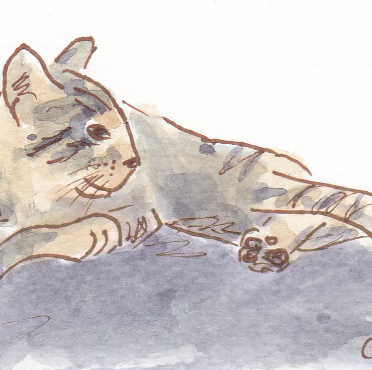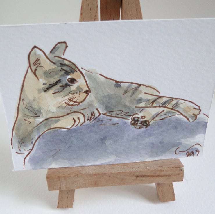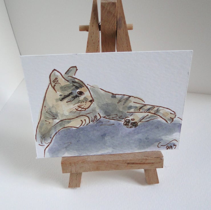 Cat Doze Original One-Off Watercolour Animal Painting with Ink on 300gm acid free watercolour paper.