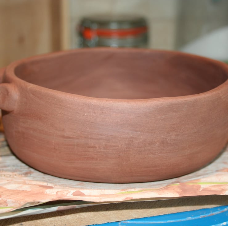 Bowl was biscuit fired and then food safe clear glaze applied to the inside only. Decorative bowl perfect for displaying in your home, fine to hold food as glaze is food safe, not suitable for cooking with and would advise to hand wash.