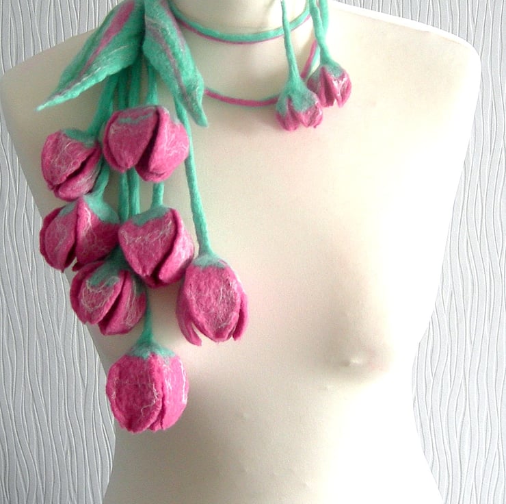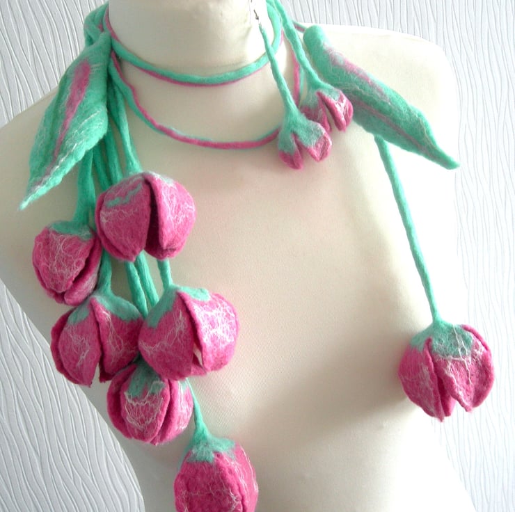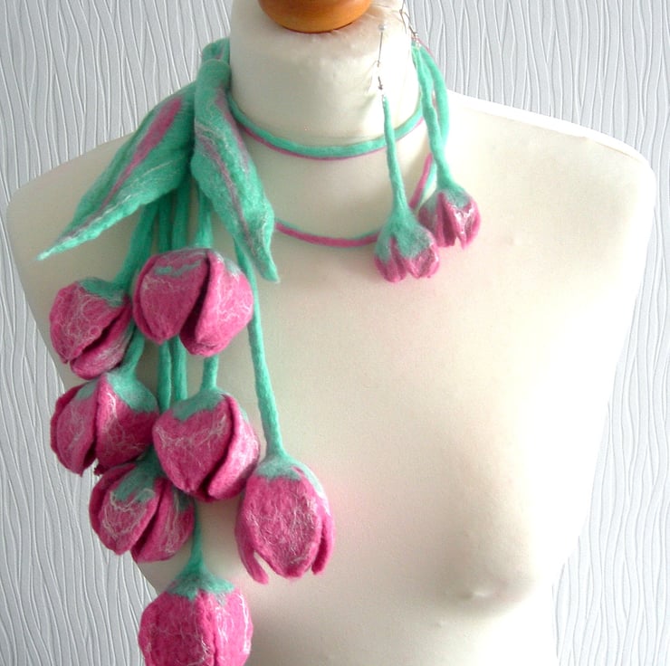 Wool Jewelry felted NECKLACE-SCARF-BELT-EARRINGS-MINT FRESH-