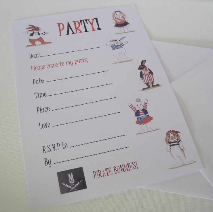 Key words: bunny bunnies rabbit rabbits pirate pirates party invite invites invitation invitations birthday celebration fancy dress Easter Christmas stocking filler