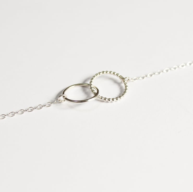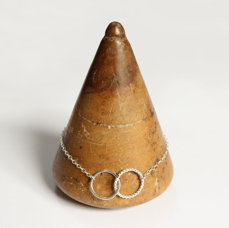 This design features 2 interlinked silver rings. Each circle measures 1.2cm in diameter, and I have used one detailed circle and one plain circle. The contrast between the two is lovely especially with the high shine finish.