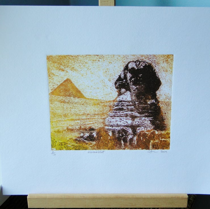 Hormakhet Sphinx Egypt Limited Edition Original Collagraph Print Art
