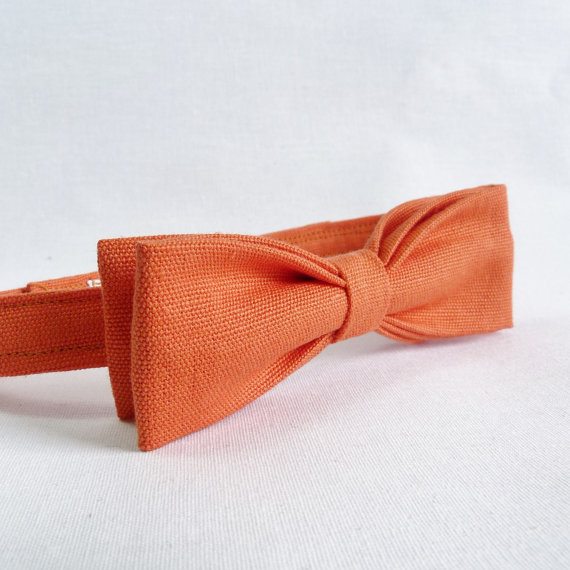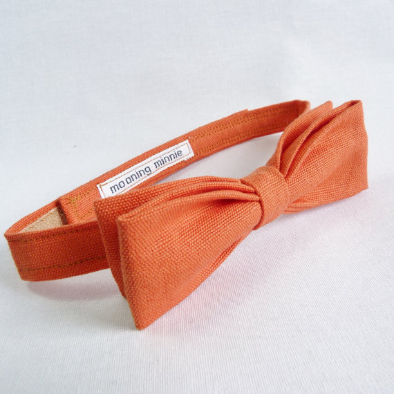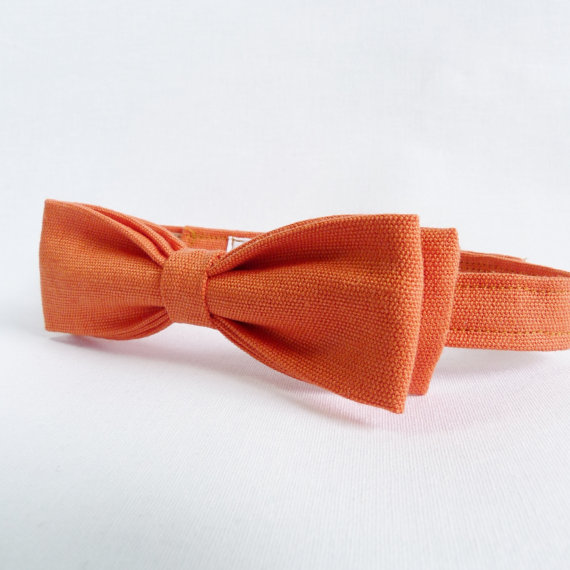 Bow ties are cool, fact. A super awesome mens accessory handmade from the finest linen fabric in tangerine orange colour. Unlike most pretied bows this tie features a double bow and gives a true impression of a one piece bow tie. A simple velcro fastening makes it incredibly easy to fit and wear.