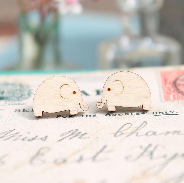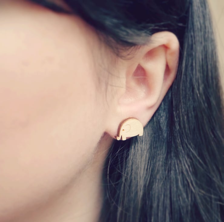 A pair of cute wooden elephant earrings.