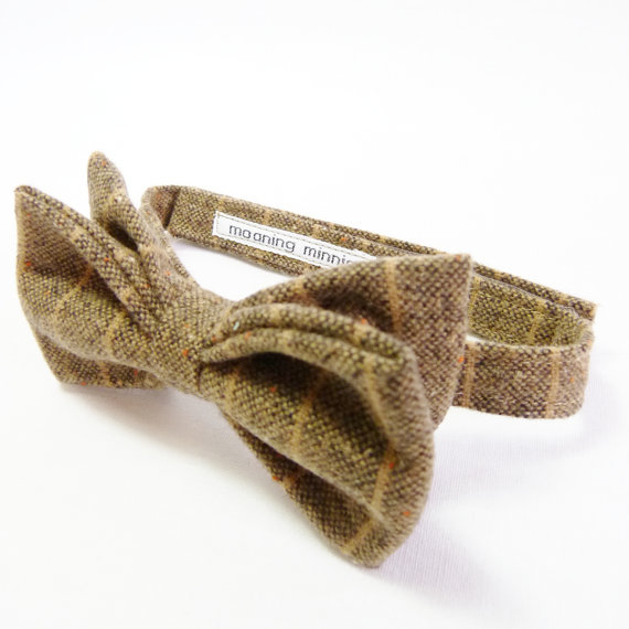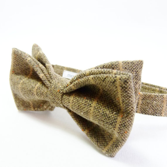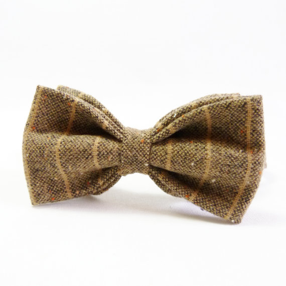 Bow ties are cool, fact. A super awesome mens accessory handmade from a top quality Italian brown/beige pinstripe tweed fabric . Unlike most pretied bows this tie features a double bow and gives a true impression of a one piece bow tie. A simple velcro fastening makes it incredibly easy to fit and wear.