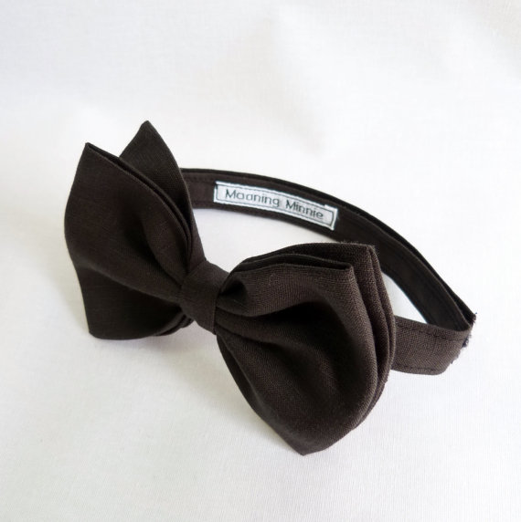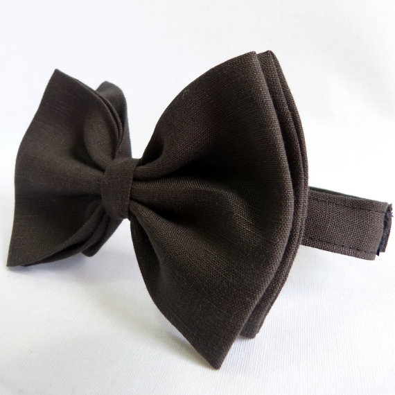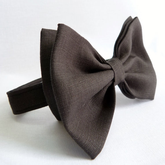 Bow ties are cool, fact. A super awesome mens accessory handmade from the finest faded black linen. Unlike most pretied bows this tie features a double bow and gives a true impression of a one piece bow tie. A simple velcro fastening makes it incredibly easy to fit and wear. The bow is oversized and larger than the average bow tie - measures approx 3.5" high x 5" wide. How retro!