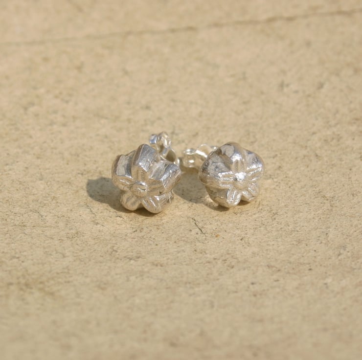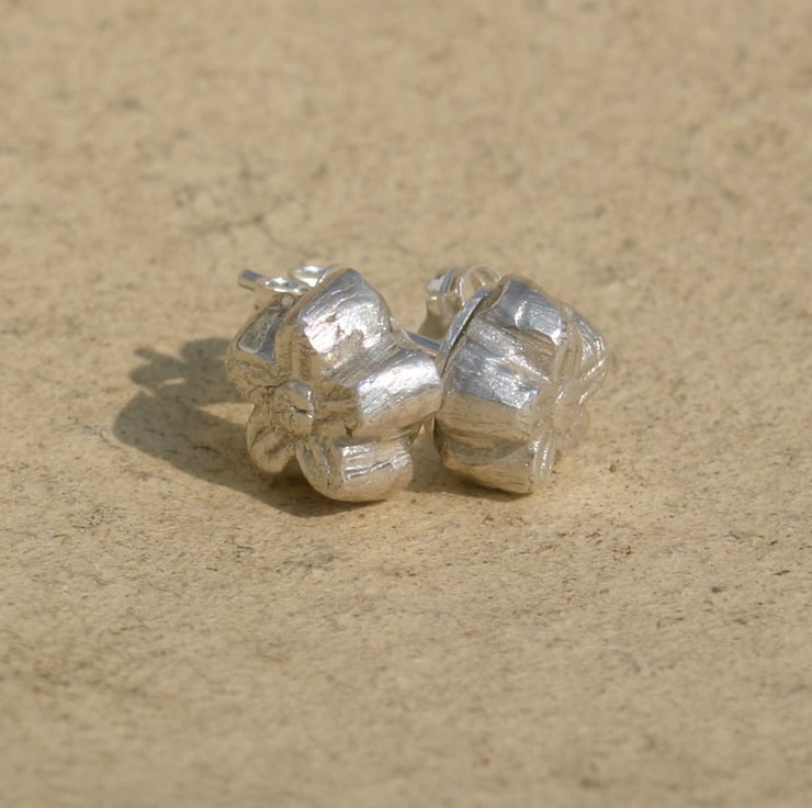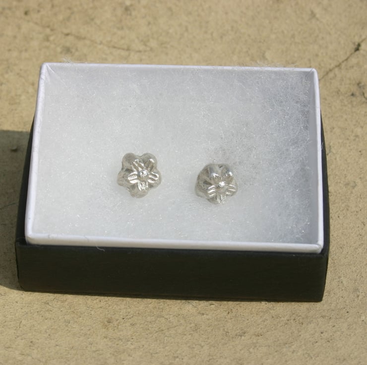 Fine silver flower stud earrings. Made using silver clay which is 99.9% fine silver and set on 92.5% stud posts.